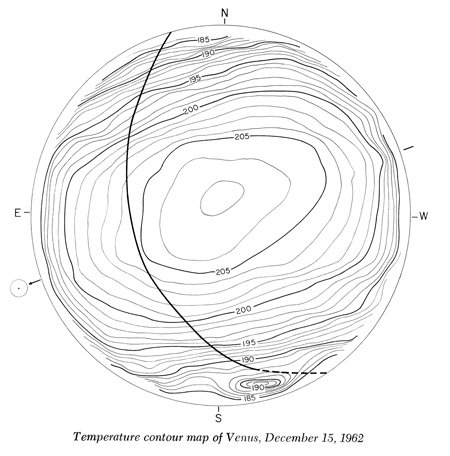 Not even the Mariner team knew—the spacecraft's radiometers were programmed to scan across the planet's limb, or edge, looking sideways thorough the atmosphere in order to find out how the temperature varied with depth. These scans proved that Venus's stultifying heat was, in fact, radiating from its surface; the atmosphere's upper reaches turned out to be ice-cold.