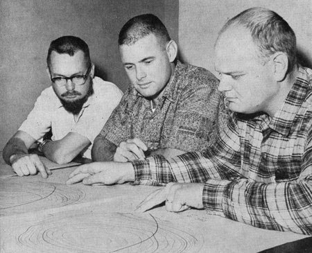 Meanwhile, down on the ground, Caltech postdocs Bruce Murray and Robert Wildey (BS '57, MS '58, PhD '62) and staff scientist Jim Westphal were scanning the face of Venus through the 200-inch Hale Telescope at Palomar Observatory, using a recently declassified infrared detector that had been developed for the heat-seeking Sidewinder missile. The system worked in the 10-micron band—wavelengths about 20 times longer than visible light—and performed up to 50 times better than civilian technology. The detector, a germanium crystal doped with mercury atoms, owed its extreme sensitivity to being cooled to –423° F in a bath of liquid hydrogen. (And yes, the Sidewinders carried a small supply of liquid hydrogen, which would boil off during flight—the thing was designed to blow up anyway.) "It was a mess," Murray, now a professor of planetary science and geology, emeritus, recalled in his Caltech oral history. "It leaked a lot."