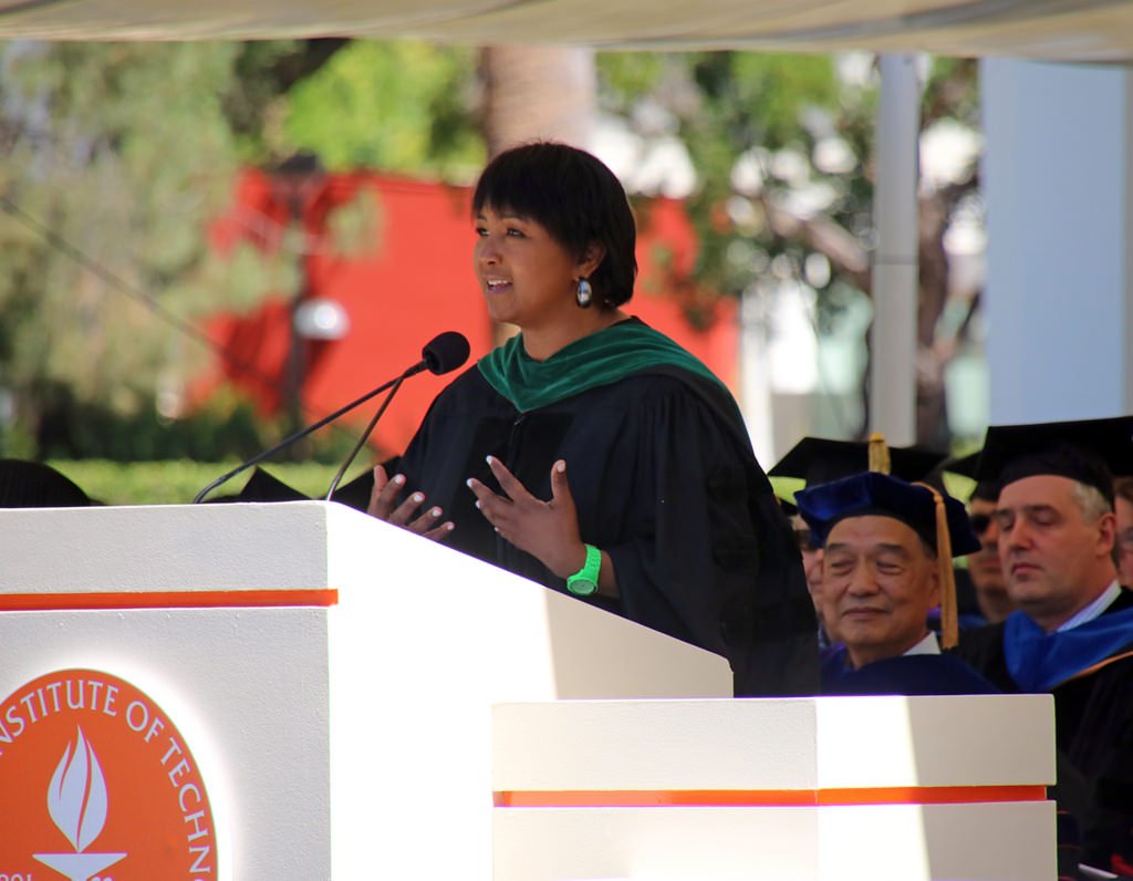 The 2017 Caltech commencement speaker was Mae Jemison, an engineer, physician, and NASA astronaut.