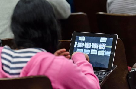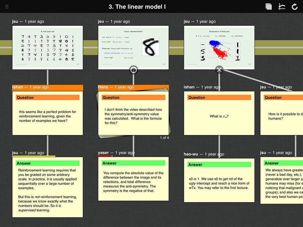 The wiki-like app facilitates this kind of active learning by allowing students to directly interact with lecture materials both inside and outside the classroom. The app compiles and connects notes, links, videos, and other materials—contributed by students, teaching assistants, and the professor—into a branching tree of collective knowledge stemming from an initial seed of slides or other multimedia material.